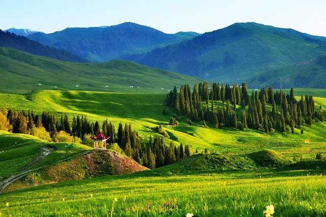 唐布拉大草原是亞洲四大最美草原之一,素有“百里畫卷,天然畫廊”之美譽(yù),被譽(yù)為人間天堂。有詩(shī)人形容唐布拉是“天神戀愛(ài)的地方”,每至初夏,有無(wú)數(shù)畫家、攝影家來(lái)此寫生和采風(fēng)。地處新疆天山北部尼勒克縣境內(nèi)的唐布拉大草原進(jìn)入初夏,嫩綠的草原猶如一幅巨大的綠色地毯從天際鋪展開(kāi)來(lái)!