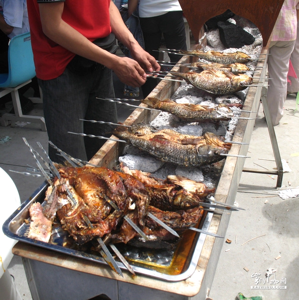博斯騰湖中的鯽魚、鰱魚、鯉魚、赤鱸等有機(jī)魚為原料烤魚倍受游客喜愛,不僅給當(dāng)?shù)乜爵~經(jīng)營者帶來一批可觀的收入,也成為旅客必吃的一道菜。