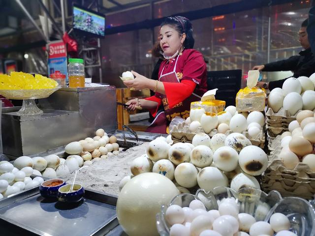 烤三蛋,是夜市巴扎上一道獨特的風(fēng)景。將雞蛋、鴨蛋、鵝蛋放在撒了灰的碳火上慢慢的烤,不停的翻動,掌握好火候,烤熟后味道非常獨特,吃時醮些早已調(diào)好的鹽水或撒些鹽,讓人回味無窮。