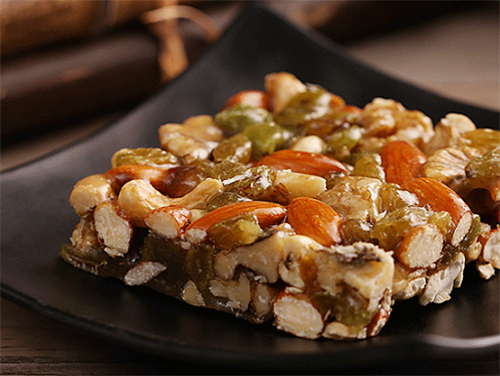 所謂的切糕是瑪仁糖在新疆外地區(qū)民眾在不知道名稱的情況下根據(jù)販賣時(shí)的特點(diǎn)所賦予的名稱,是一種新疆維吾爾族民眾采用傳統(tǒng)特色工藝,選用核桃仁、玉米飴、葡萄干、葡萄汁、芝麻、玫瑰花、巴丹杏、棗等原料熬制而成的民族特色食品。因出售時(shí)一般用刀從大塊瑪仁糖切下小塊,因此又被稱作“切糕”。