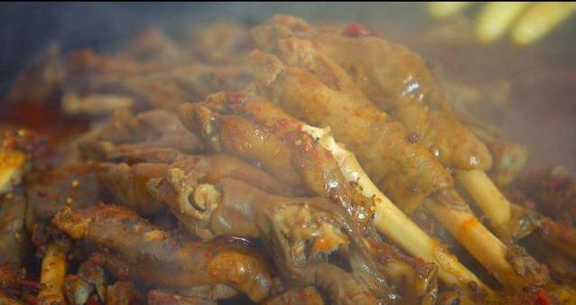 3、羊蹄入老湯鍋燉爛(指蹄筋)后入盤,把羊蹄鹵到熟爛,羊蹄本身沒有什么肉,就是一層皮,要小心不要過爛,導(dǎo)致骨肉分離的悲慘下場(chǎng)。鹵好后,撈出,用胡椒、辣面等佐料拌勻即可,或者可以淋一些剛才的鹵湯汁。