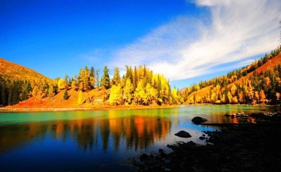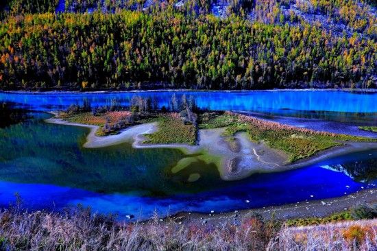 喀納斯湖外形呈月牙,湖區(qū)景觀主要有駝?lì)i灣、變色湖、臥龍灣等;生長(zhǎng)有哲羅鮭、細(xì)鱗鮭等珍稀魚類。