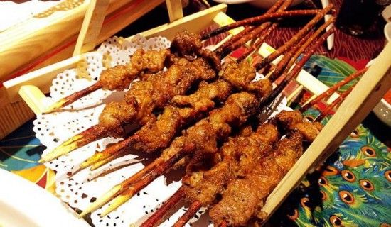 色澤醬黃油亮,肉質(zhì)鮮嫩軟脆,味道麻辣醇香,獨(dú)具特別風(fēng)味。可就著馕吃??狙蛉猓瑐鞯饺珖?guó)各地,其中以新疆的最為正宗!其做法是:把羊肉切成小薄片,用綱鐵釬穿上,放在燃燒著的無(wú)煙煤上烤,然后撒上些辣面子、精鹽和孜然,數(shù)分鐘即成。其色呈焦黃,油亮,味道微辣,不膩不膻,嫩而可口。據(jù)說不愿吃羊肉的上海人,吃了新疆的烤羊肉串,也都會(huì)伸出大拇指說:“蠻好切(吃)格”。