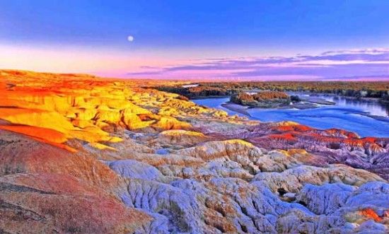 激猛的河流沖擊以及狂風(fēng)侵蝕,形成了北岸的懸崖式雅丹地貌,河岸巖層抗風(fēng)化能力強(qiáng)弱不一,輪廓便會(huì)參差不齊,而巖石含有礦物質(zhì)的不同,又幻化出種種異彩,因此得名“五彩灘”。